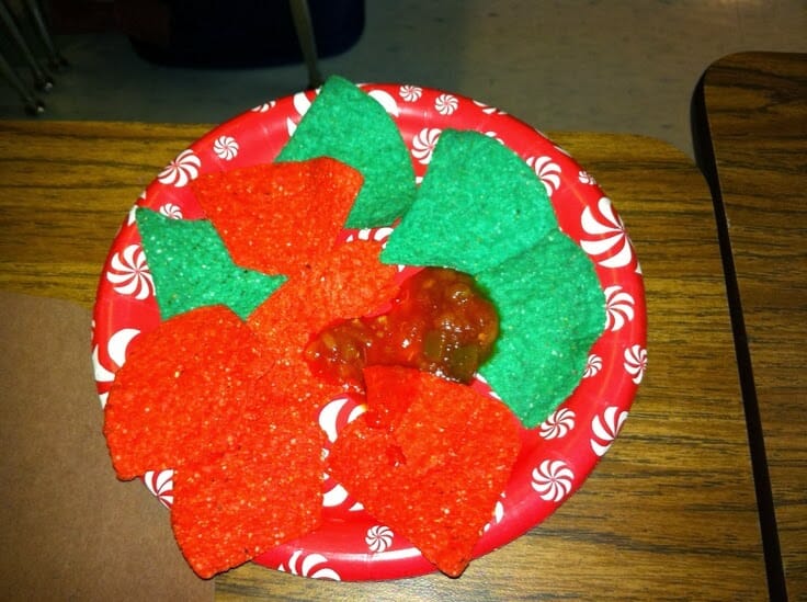 How about a poinsettia snack?! I found this on Pinterest! How cute?! And easy! It’s a tortilla chip poinsettia! Now…let’s hope I can find red and green tortilla chips! hehe
