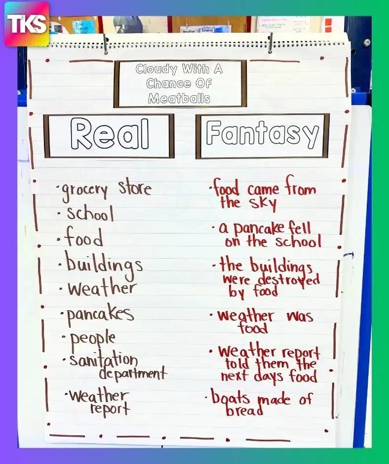 We do a fun, SIMPLE room transformation to make our classroom look like Chewandswallow. We will do a story map, talk about real and fantasy and write about food falling from the sky!
